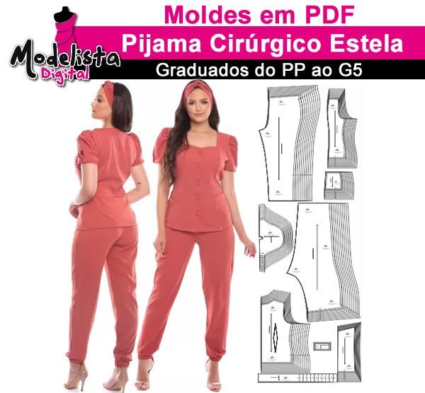 Molde em PDF Pijama Cirúrgico Estela
